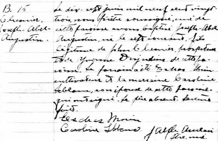 Baptism record of Joseph Abel Augustin Chesnier