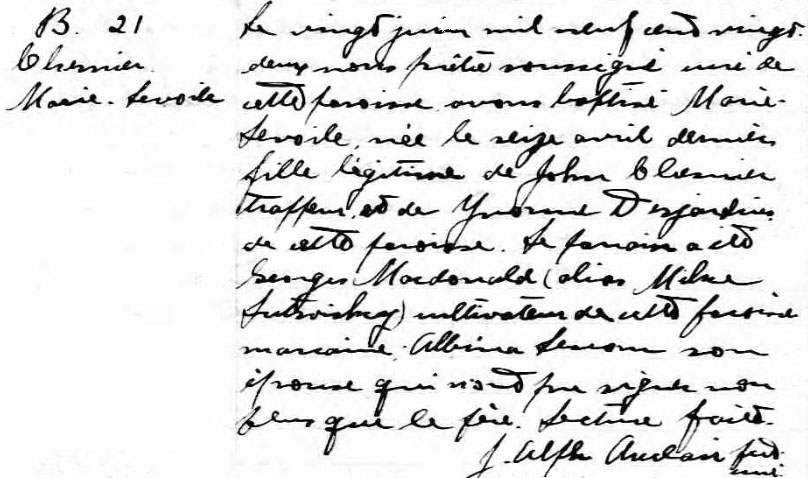 Baptism record of Marie Levoile Chesnier