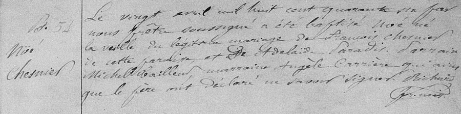 Baptism record of Noé Chesnier