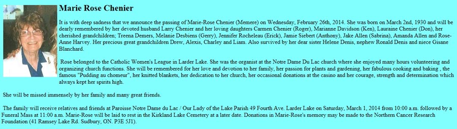 Chénier, Marie-Rose (Née Mathieu) (1930-2014)