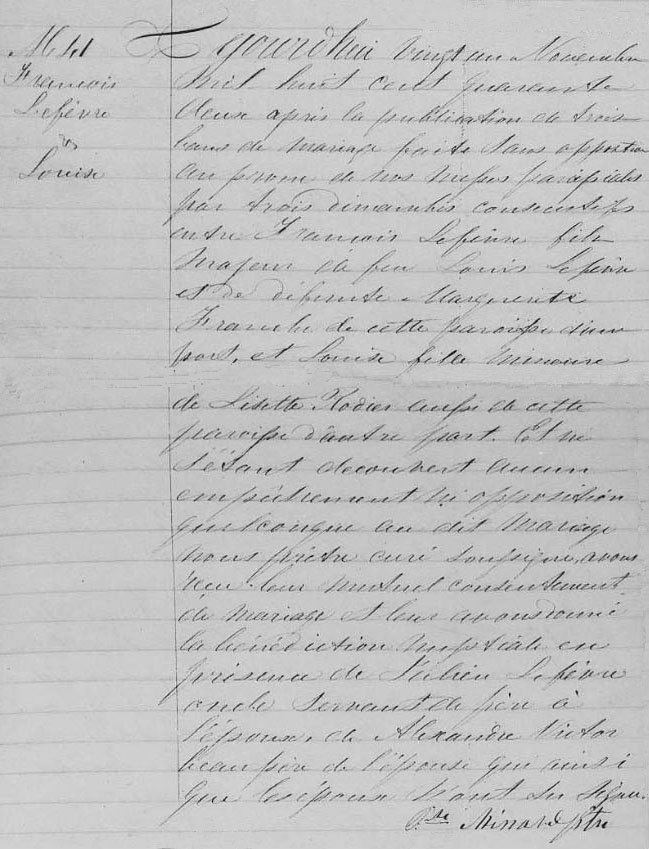 Marriage record between François Lefebvre and Louise (Couvret?)