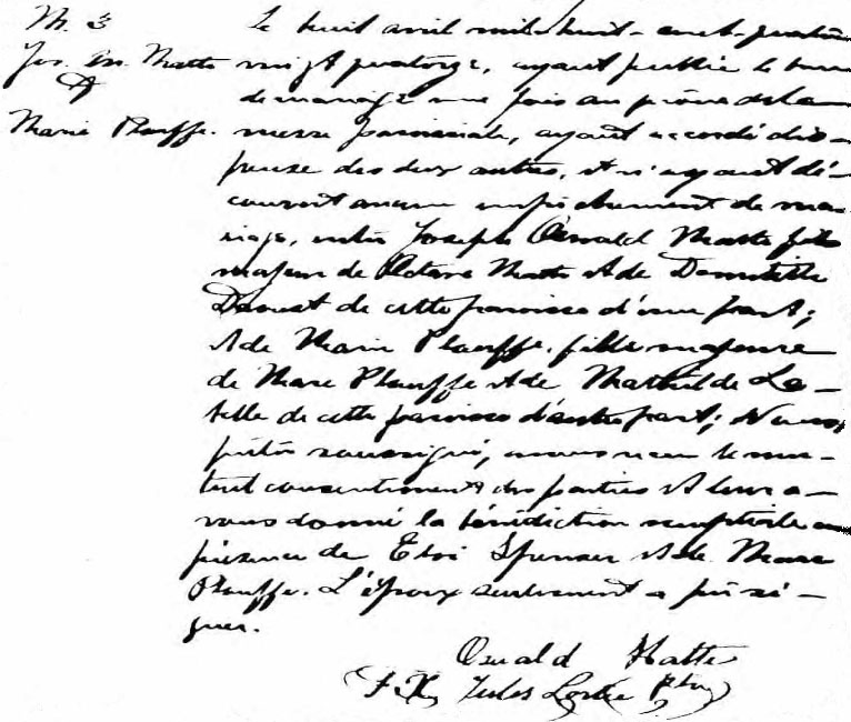 Marriage record between Marie Plouffe and Joseph Arnold Matte