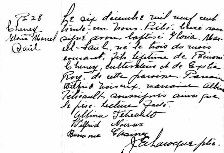 Baptême de Gloria Marcel Saül Cheney