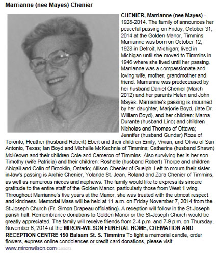 Chénier, Marrianne (Née Mayes) (1928-2014)