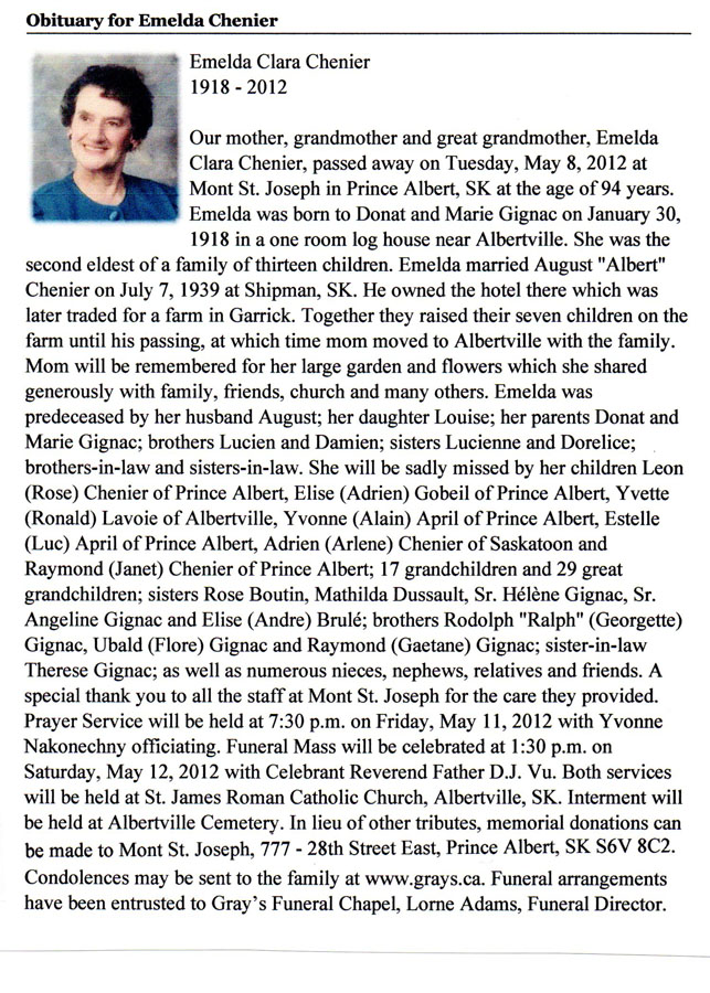 Emelda Clara Chénier (Née Gignac) (1918-2012)