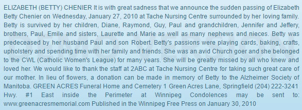 Chenier, Elizabeth Betty (Née Deschene) (1931-2010)