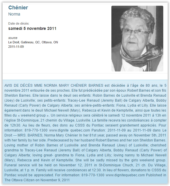 Barnes, Norma Mary (Née Chénier) (1931-2011)