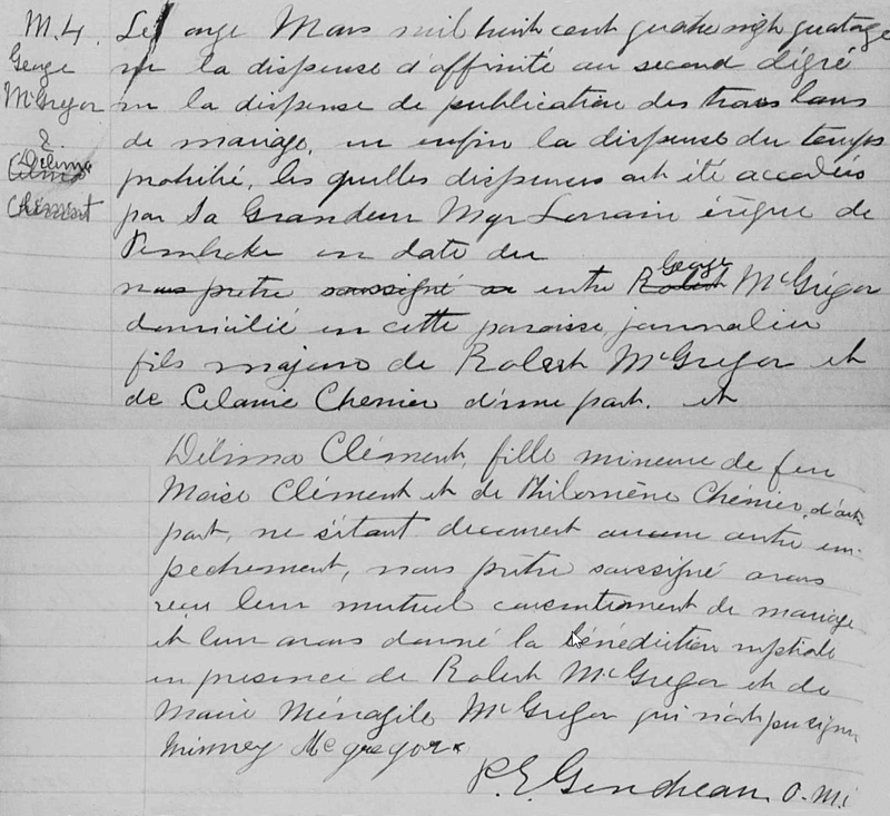 George McGregor & Délima Clément church marriage in Mattawa 1894
