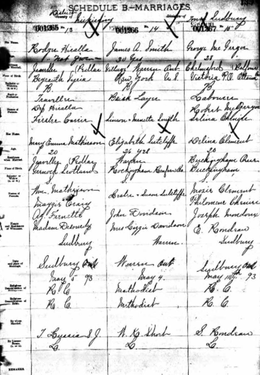 George McGregor & Délima Clément Civil marriage in Sudbury, Ontario 1893