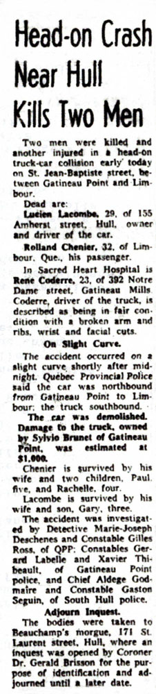 Record of death from car accident for Rolland Chénier
