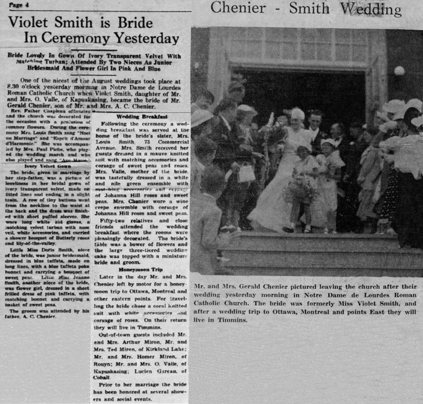 Gérard Chénier and Violet Smith wedding 16 Aug 1937