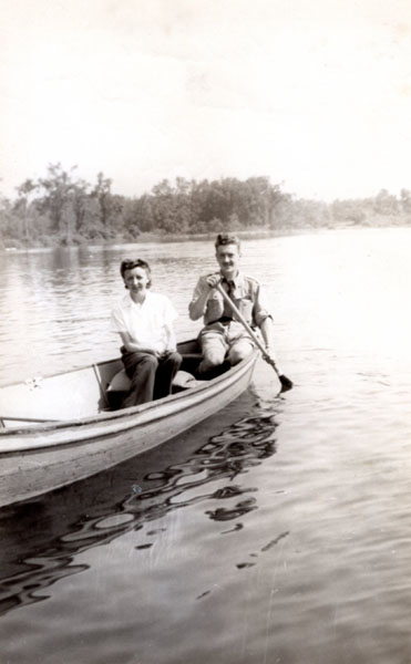 Gérard Chénier & Violet honeymoon canoeing on the Picanoc River near Chénier, Québec