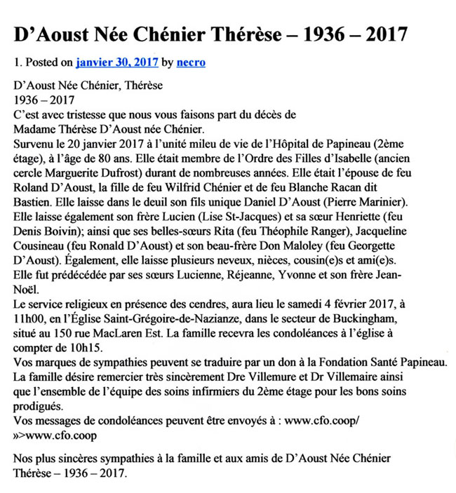 D'Aoust, Thérèse (Née Chénier) (1936-2017)