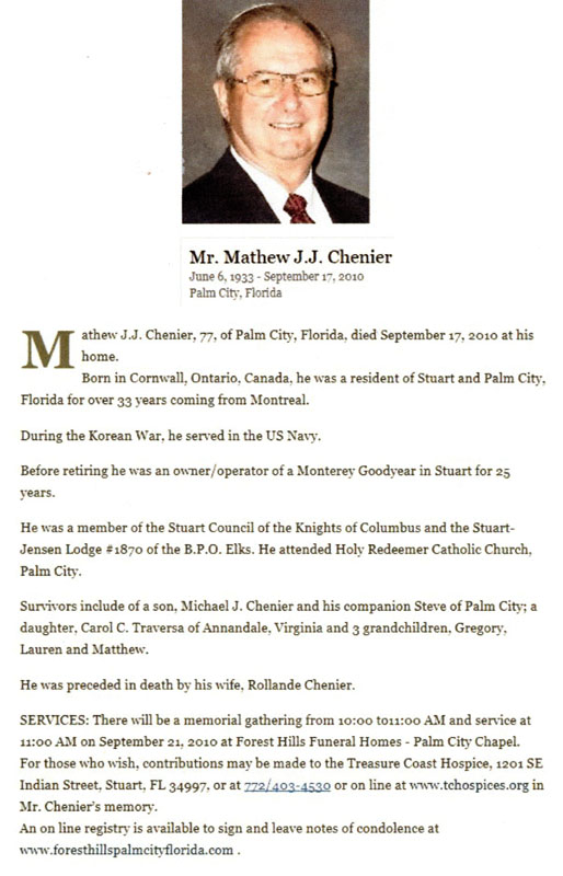 Chenier, Mathew J. J. (1933 - 2010)
