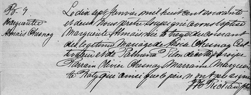 Record de baptême de Marguerite Almaïs (Hermoise) Chesnay