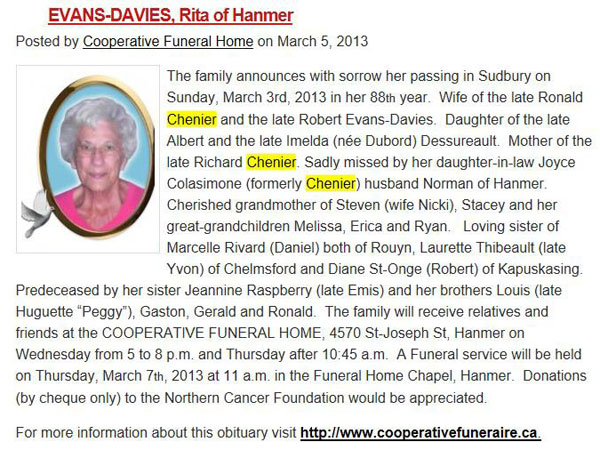 Evan-Davies, Rita (Née Dessureault) (1925-2013)