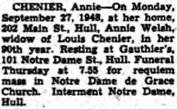 Chénier, Annie (Née Welsh) (1858-1948)