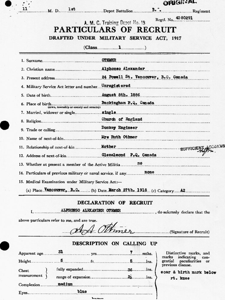 Alphonso Alexander Military Draft Document