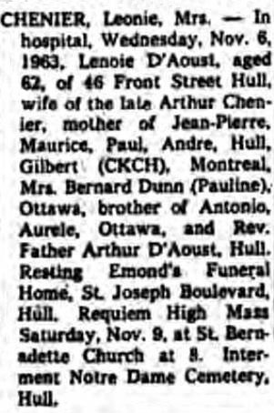 Chénier, Léonie (Née D'Aoust) (1901-1963)