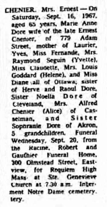 Chénier, Marie Anne (Née Doré) (1902-1967)