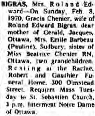 Bigras, Marie Adèle Gratia, Née Chénier (1910-1970)