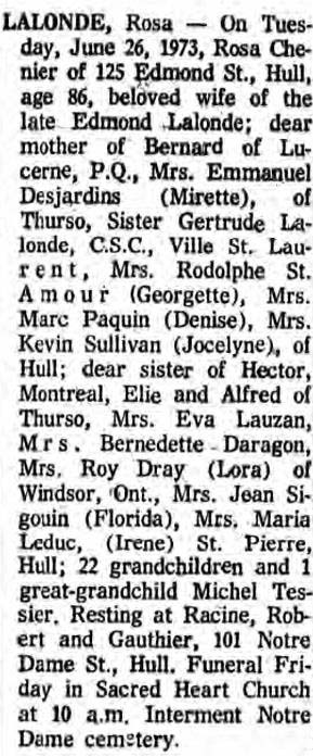 Lalonde, Rosa (Née Chénier) (1887-1973)