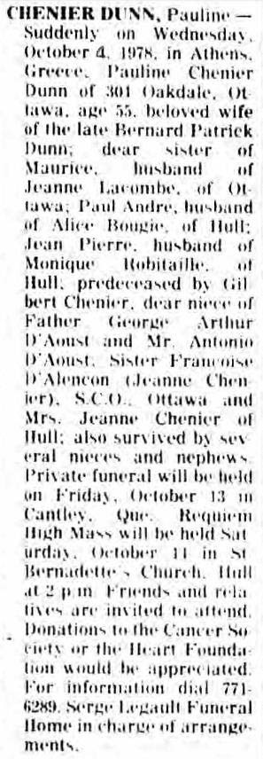 Chénier-Dunn, Pauline (Née Chénier) (1923-1978)