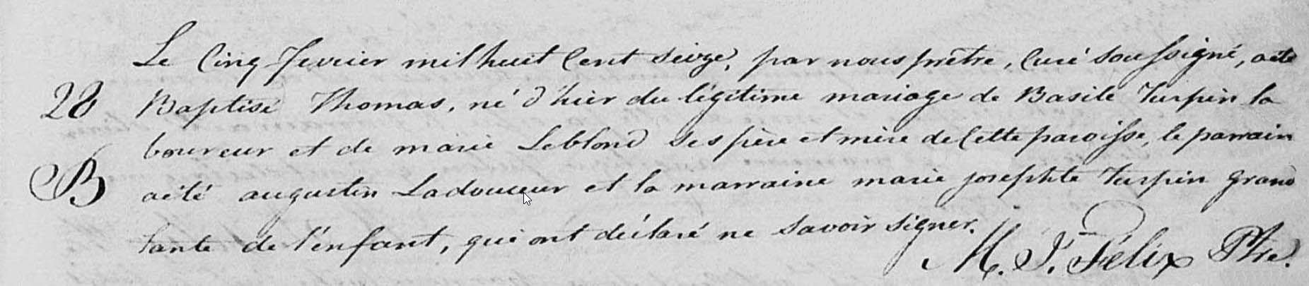Record de naissance et baptême de Thomas Turpin