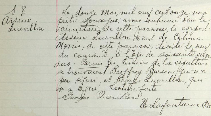 Death record for Arsêne Quevillon