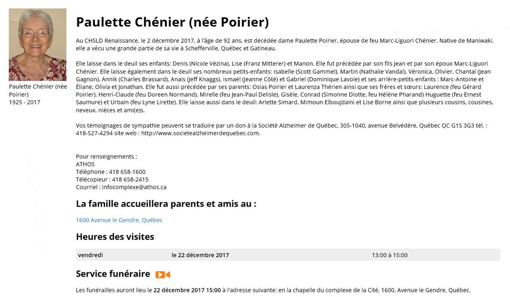 Chénier, Paulette (Née Poirier) (1925-2017)