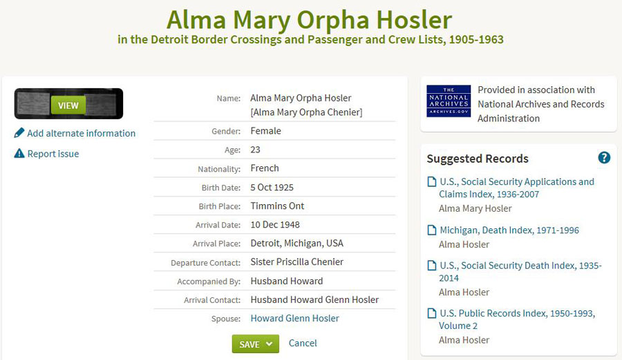 Alma Mary CHENIER