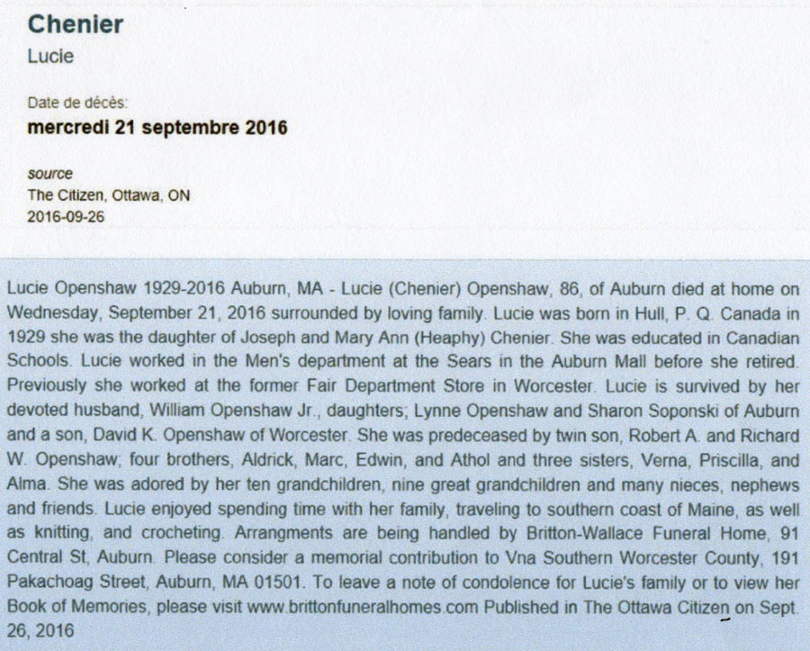 Openshaw, Lucie (Née Chénier) (1929-2016)