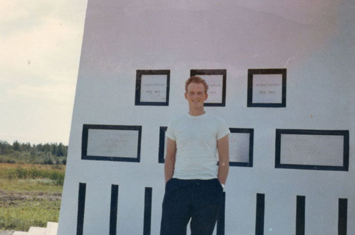 Ron at Reesor Siding Monument 1965 (56 Km west of Kapuskasing, ON)
