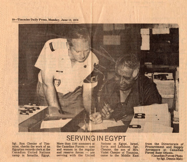 Le Sgt Ron Chénier à Ismaïlia, Egypte (déc 1977 à juin 1978). Le secrétaire égyptien est Mohammed Morshadey