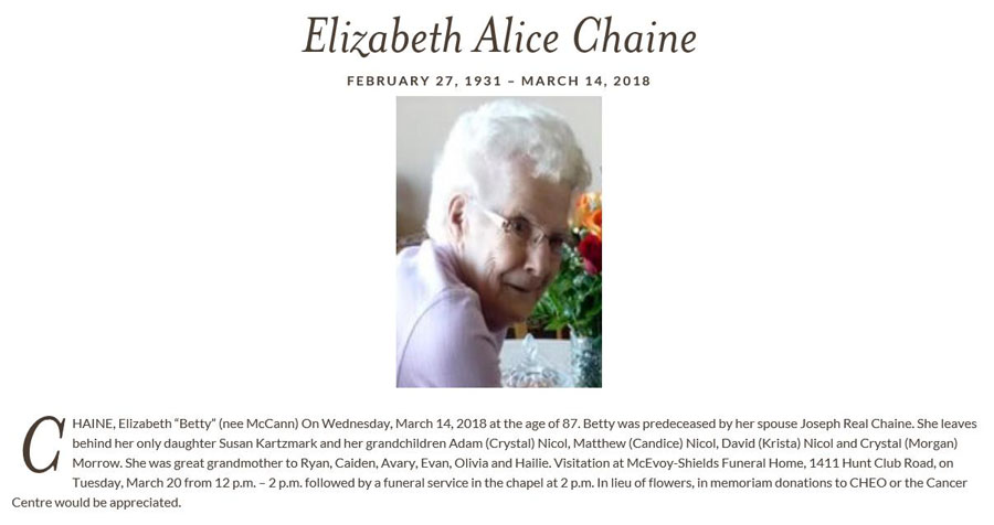 Chainé, Elizabeth Alice (Née McCann) (1931-2018)