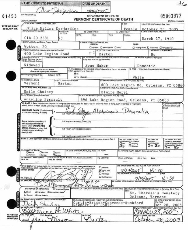 Desjardins, Olive Melina (Née Chainey) (1910-2005)