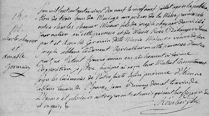 THE DESCENDANTS OF BERTRAND CHESNAY dit LAGARENNE