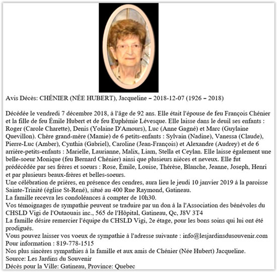 Chénier (Née Hubert) Jacqueline (1926-2018)