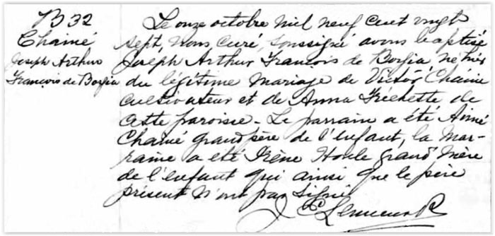 Baptism record for: Joseph Arthur François de Borgia Chainé