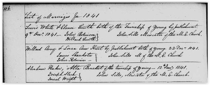 Marriage record between William "Willard" Avery and Lorra Ann Hunt
