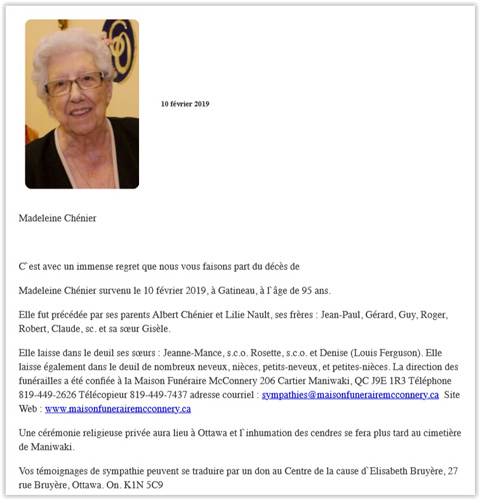 Chénier, Madeleine Thérèse (1923-2019)