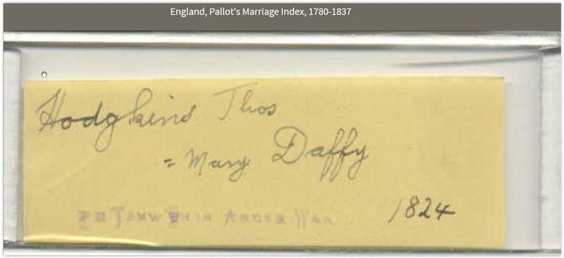 Record de mariage entre Thomas Hodgkins and Mary Duffy