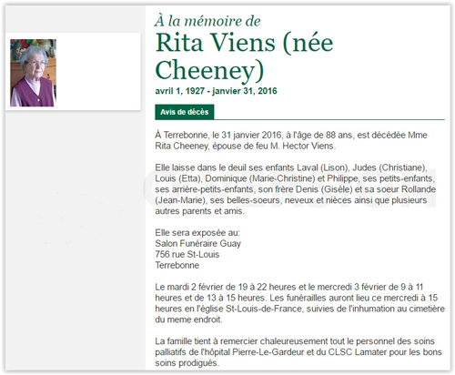 Viens, Rita (Née Cheeney) (1927-2016)
