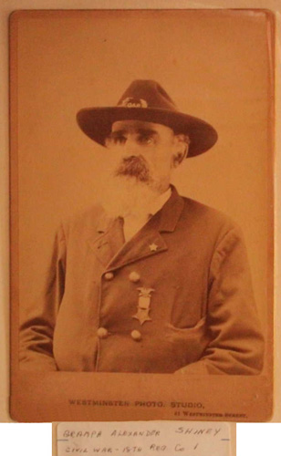 François-Xavier (Frank) CHENE/SHINEY, born on 12 February 1831 in Marieville, QC, Canada,1,2,3 and was baptized on 12 February 1831 in Ste-Marie-de-Monnoir, Marieville, QC, Canada. Godparents: François-Xavier Chené & Monique Desmarais, uncle & aunt of the child.1,2,3 His baptismal name as written in the parish register was François-Xavier CHENE.1,2 He married Clarissa YORK, daughter of Harvey YORK and Rosany (Roxia) (Rosana) (Roxanne) WHITE, on 24 March 1853 in Cambridge, VT, USA.4 He died on 7 October 1898 in Rush Center, KS, USA, at the age of 67.4 His name at the time of death was written as Frank SHINEY4 and was buried in October 1898 at the Locust Hill Cemetery in Rush Center, KS.4