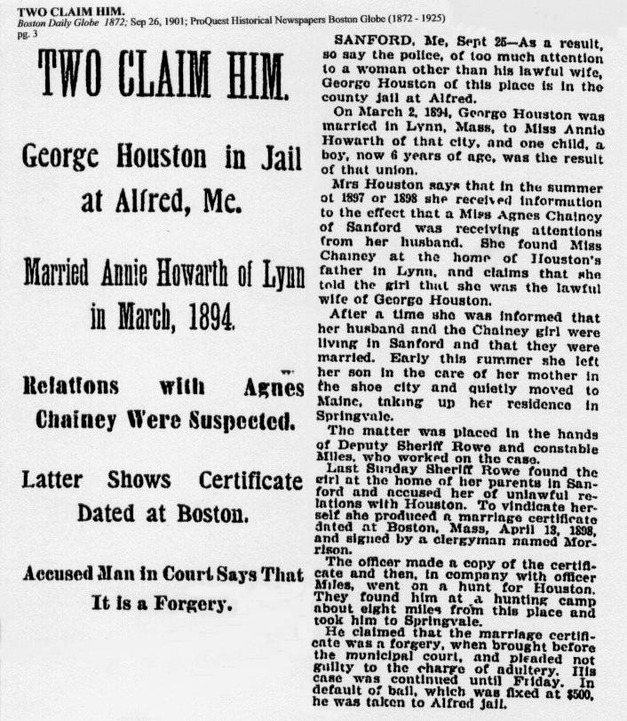 - [S1100] Portsmouth Herald, According to her brother Frederick's obit.