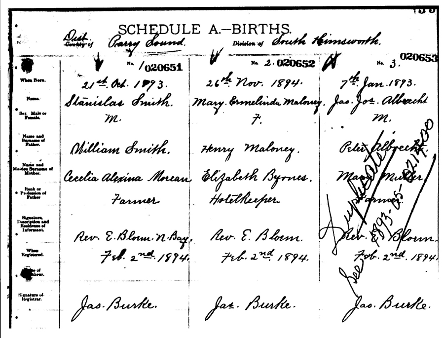 - [S1120] Website - Ancestry.ca, online http://search.ancestry.ca, Ontario, Canada, Birth (1869-1911) Reg. No. 020651.