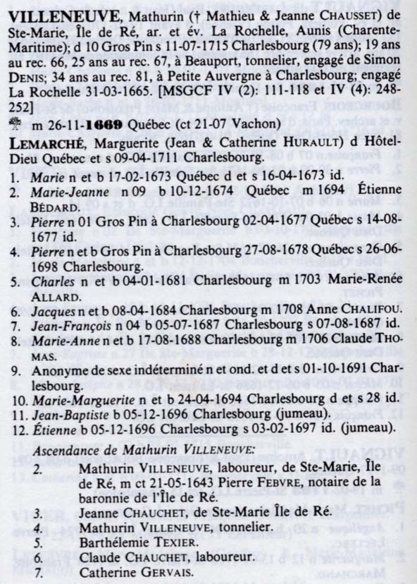 | Father* | Mathurin VILLENEUVE b. 1645, d. 10 July 1715 |