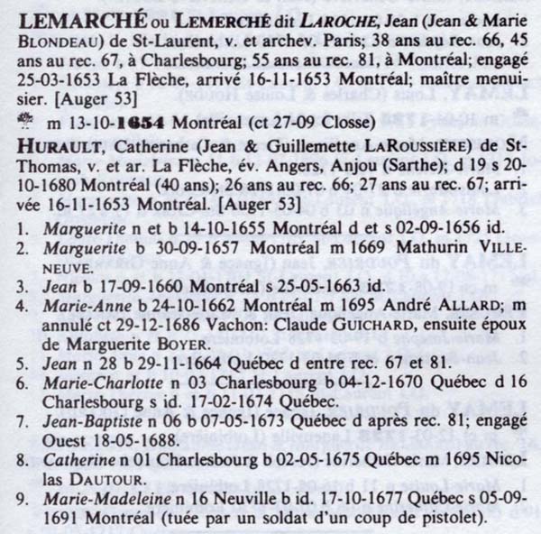 Marguerite TOURNOIS married Jean-Baptiste MENARD DIT BELLEROSE on 5 January 1722 in Ste-Famille, Boucherville, QC, Canada.1