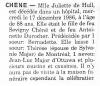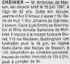 Transcription et traduction en anglais du décès et inhumation de Bertrand Chenay