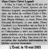 Chénier, Claire (Née Plante) (26 Dec 1926-27 Oct 2016)